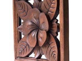 枠付き木彫りのレリーフ(プルメリア) アジアン バリ 木製 パネル ウッドレリーフ 壁掛け バリ雑貨 インテリア ココバリ アジアン雑貨 バリ雑貨 ホテル リゾート おしゃれ インテリア