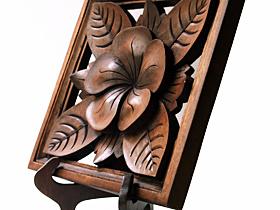 一枚の木の板を丁寧に彫って作られたプルメリアのレリーフです。