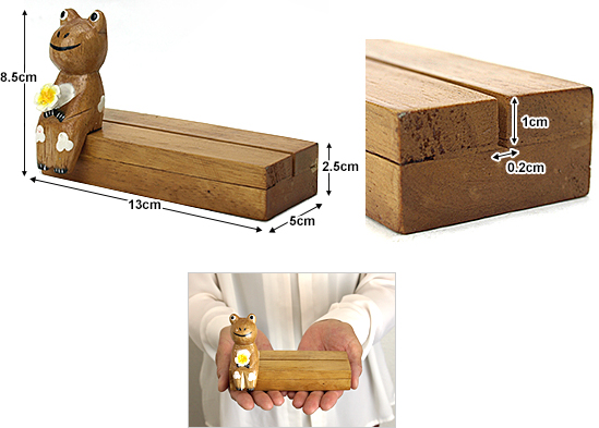 横:約13cm 奥行:約5cm 高さ(カエル含む):約8.5cmカードを差し込む溝の幅:0.2cm