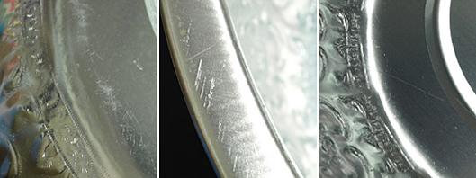 アルミ製品の特性としまして、使用上は特に問題ございませんが、写真のような傷が付いている場合がございます。また、ぶつけると凹んでしまいますが、それらはアルミ製品の特性としまして、予めご了承の上、ご注文をお願い致します。