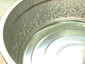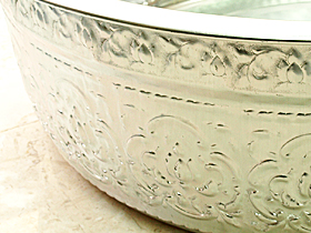 オリエンタルなデザインがほどこされたアルミ製のフットバスボウルです。