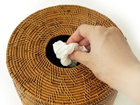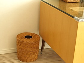 円柱形のボディが和むダストボックス。フタの真ん中に小さめの穴があいているので、ティッシュなどが捨てやすく、かつ隠してくれる便利なダストボックスです。