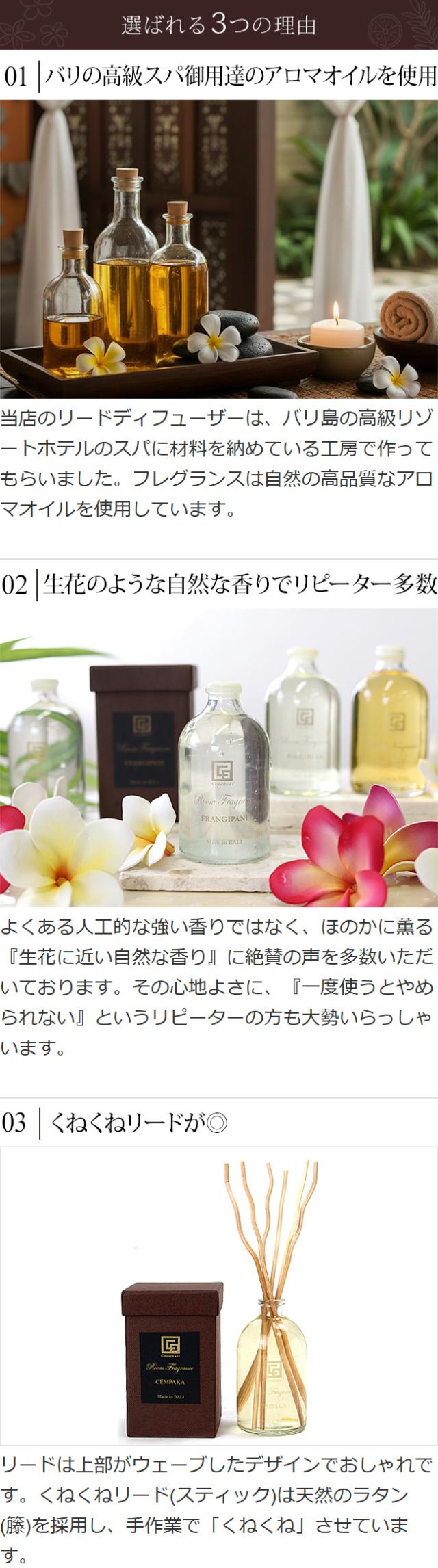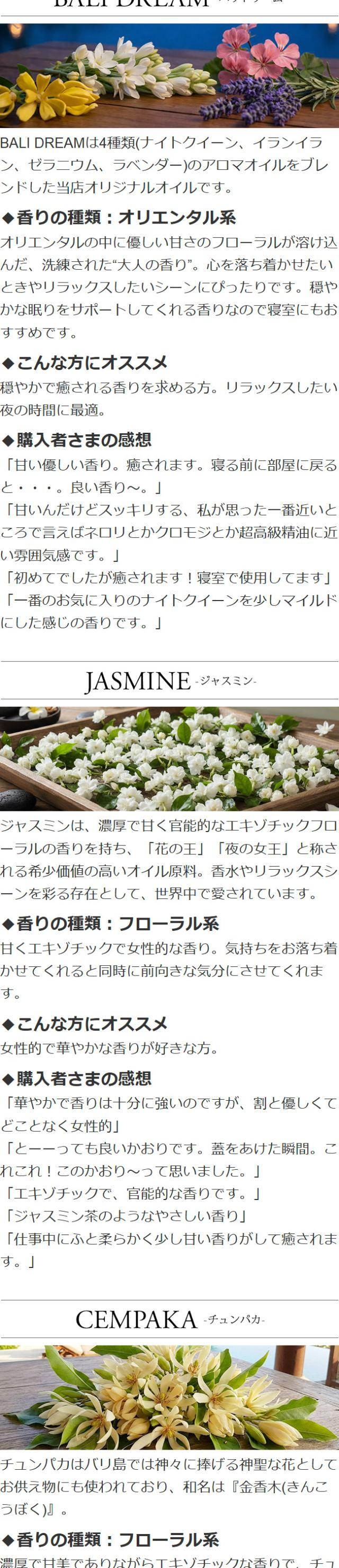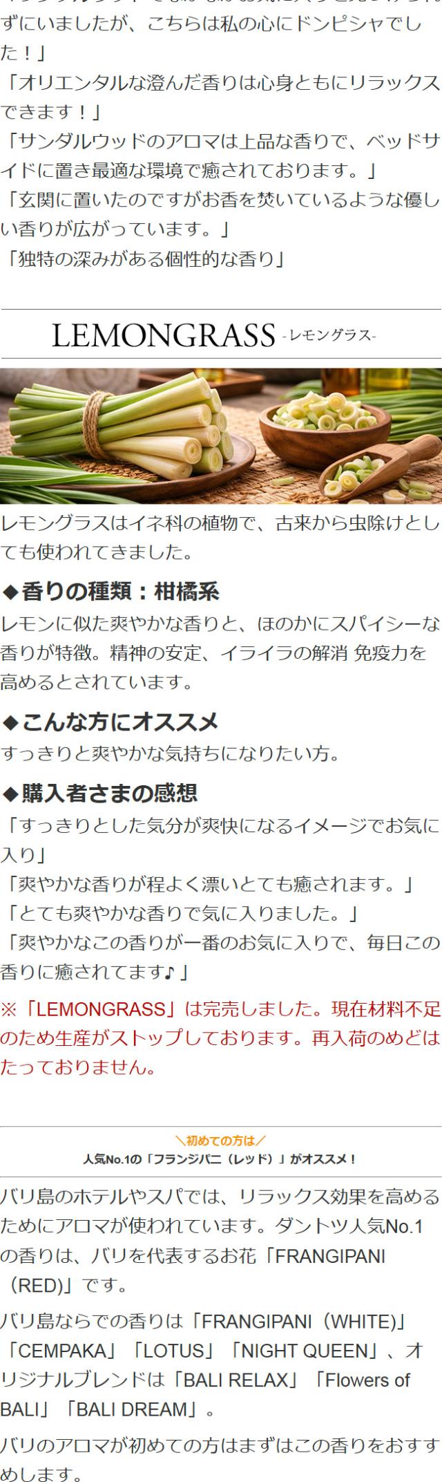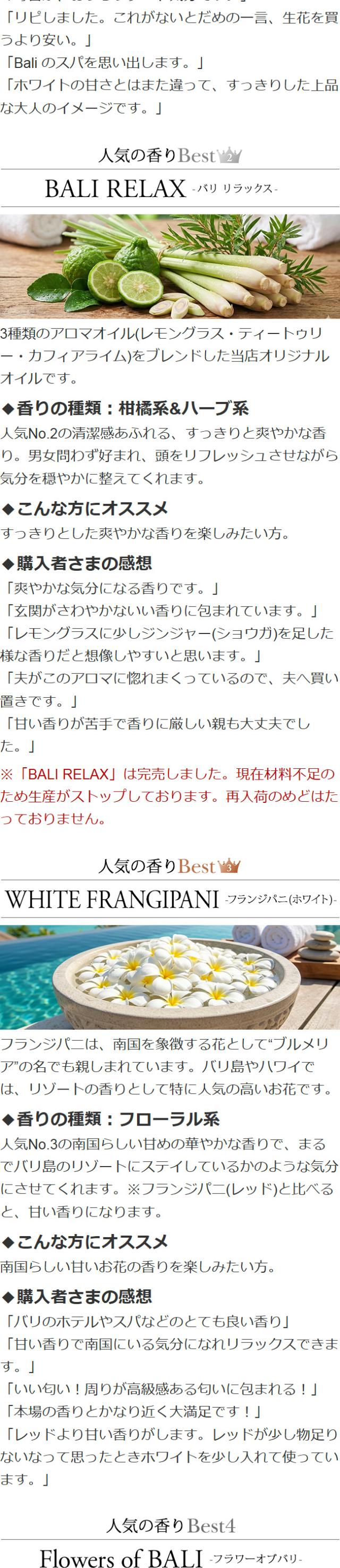 バリ島の高級リゾートホテルのスパに材料を納めているお店で作りました。フレグランスは高品質なアロマオイルを使用。