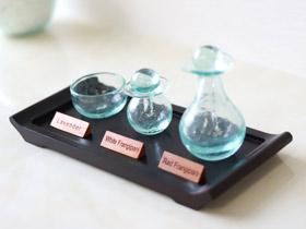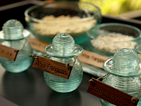 気にしていますか?オイルボトル。オイルが安価な容器に入っていたら、お客様の気分も少し下がってしまうのではないでしょうか。バリのスパ仕様のボトルに移し替えるひと手間が、こだわりを感じます。ボウルもこだわると、さらに雰囲気が出ますよ。お店のカタログやHPのイメージ写真にも使えます。