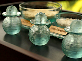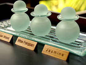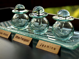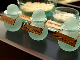 そこの工房では、バリの高級スパのガラス製品を製作しています。1つ1つ手作業で作られたクリスタルのボトルには、何か癒しのパワーを感じます。