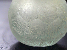 ガラスに砂を吹きかけてすりガラス調にしたものです。マットな質感で、高級感があります。さらに6角形ような模様も入っています。