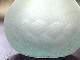 ガラスに砂を吹きかけてすりガラス調にしたものです。マットな質感で、高級感があります。さらに6角形ような模様も入っています。