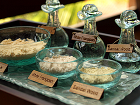 気にしていますか?オイルボトル。オイルが安価な容器に入っていたら、お客様の気分も少し下がってしまうのではないでしょうか。バリのスパ仕様のボトルに移し替えるひと手間が、こだわりを感じます。ボウルもこだわると、さらに雰囲気が出ますよ。お店のカタログやHPのイメージ写真にも使えます。