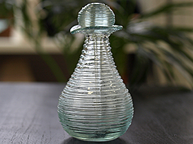 ジェンガラケラミックでガラス製品を製作していた職人と、ガラスアーティスト鳥毛氏のもとで長年働いていた職人が独立して作ったガラス工房にオーダーして製作したオイルボトルです。