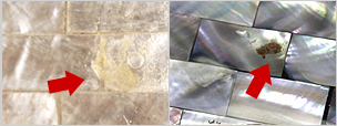 天然のカピス貝などを貼り合わせて作る手間のかかる一品。
