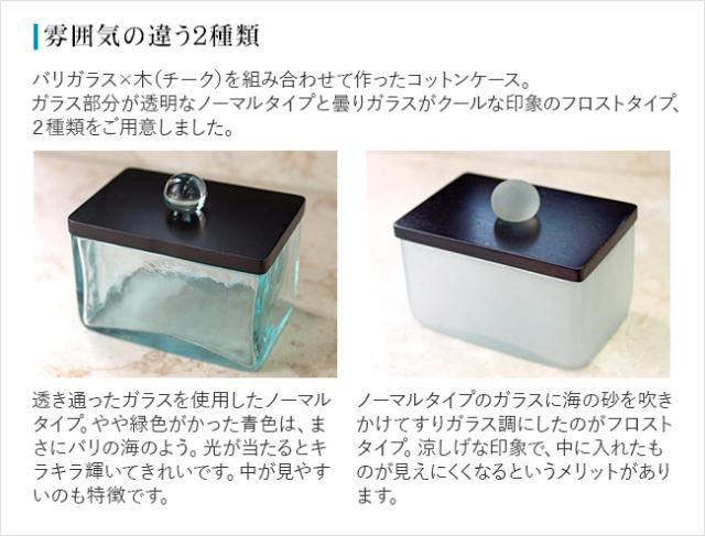 ガラスと木(チーク)の組み合わせで作ったリゾート感いっぱいのコットンケースです。