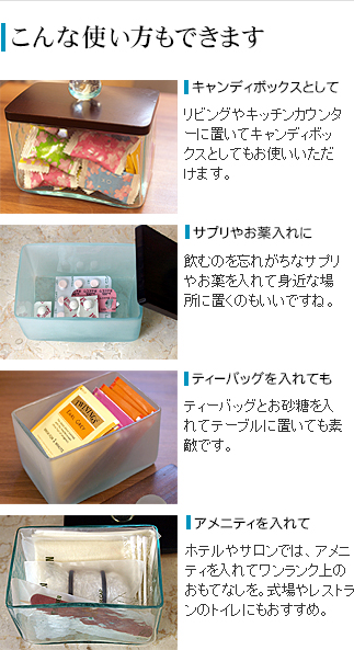 涼しげな印象で、中に入れたモノが見えにくいので、生活感を出したくないモノを収納するのにおすすめです。