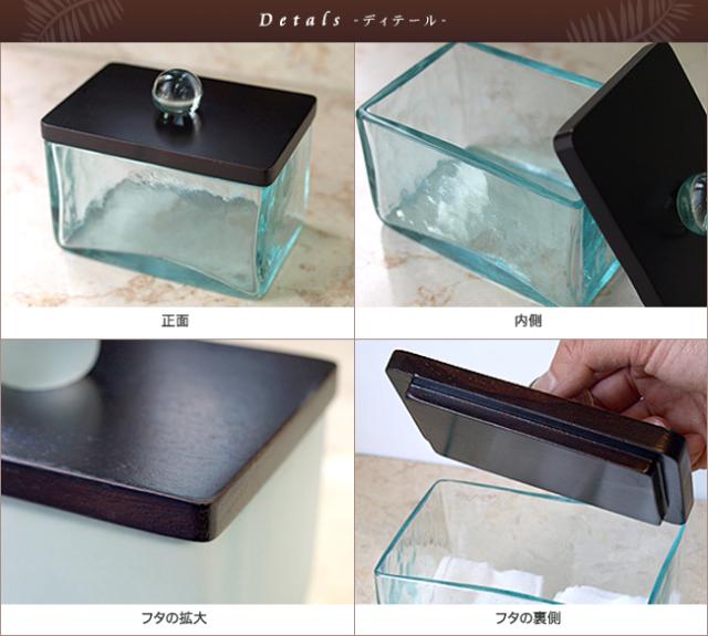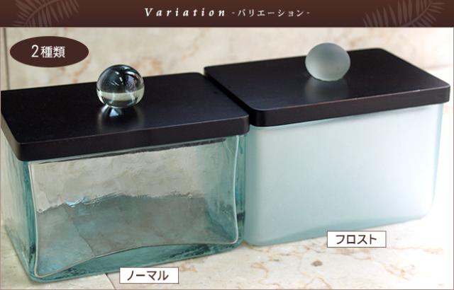 コットンケース(レギュラーサイズ) フタ(ダークブラウン) ガラス ホテルライク バリ おしゃれ 高級感 スパ ホテル用品 客室備品 バリ雑貨