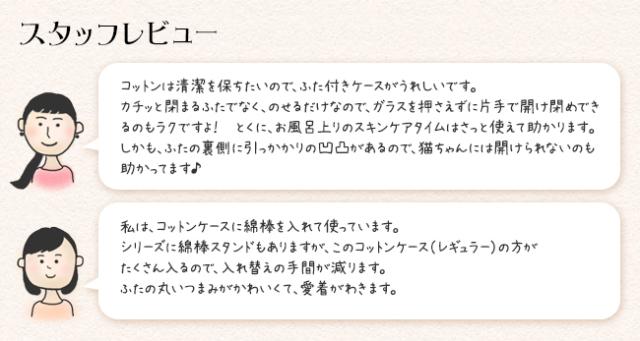 こちらのコットンケースや綿棒スタンドのシリーズは、商品の特性上、フタが本体にピッタリとははまりません。 下記の写真のようにフタがずれる状態は不良ではありませんので、あらかじめご了承ください。