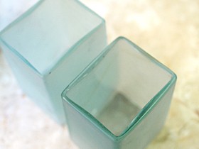 ガラスの容器はフロスト加工(曇りガラス状にする加工)が施してあるので、涼しげです。また中に入れたモノが見えにくくなる利点があります。