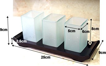 3つのガラスとチークの台の組み合わせの歯ブラシスタンドです。