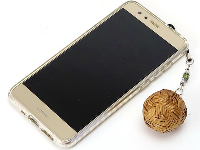 携帯電話に付けたイメージ。レザーブレスレットをキーホルダーとして、アタのガムランボールを付けたイメージ。