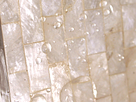 光の当たる角度によって、シェルがキラキラと輝きます。 天然の輝きなので、品があって大人の空間作りに最適です。