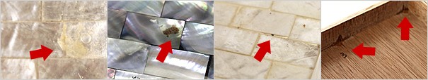 天然素材使用のため、小さなキズ・欠け・シェルの歪みや色のばらつきなど個体差がございます。 これらは、シェル特有の輝きによって目立ちにくいため、使用中に気になることは少ないと思います。