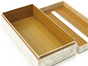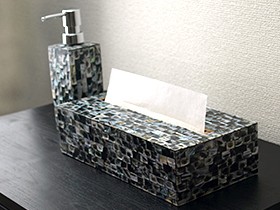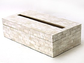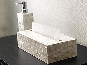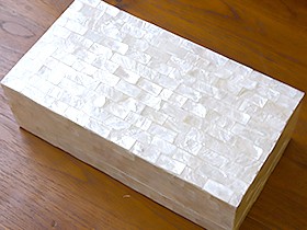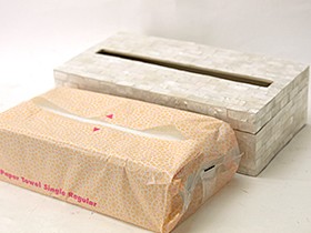 貝殻をモザイクタイル状にして貼り合わせて作ったペーパータオルケースです。