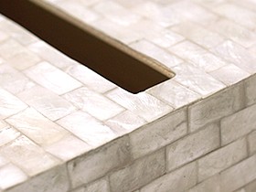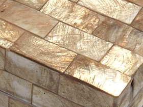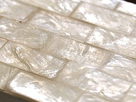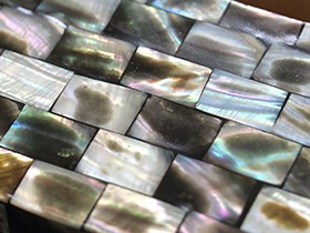 貝殻をモザイクタイル状にして貼り合わせて作る手間のかかる一品です。