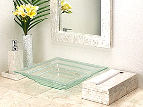 意外と種類が少ないペーパータオルケースをオリジナルで作りました。 貝殻をモザイクタイル状にして貼り合わせて作る手間のかかる一品です。