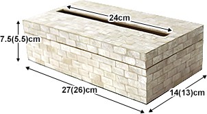 縦:約14(13)cm 横:約27(26)cm 高さ:約7.5(5.5)cm 取り出し口:24cm ※()内は内寸