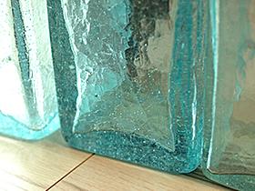 癒しの楽園バリ島の爽やかな淡いブルーのガラス製フラワーベース(花瓶)です。厚みがあって、手作りの温もりを感じる作品です。四角柱形のシンプルなデザインで飾るお花を選びません。
