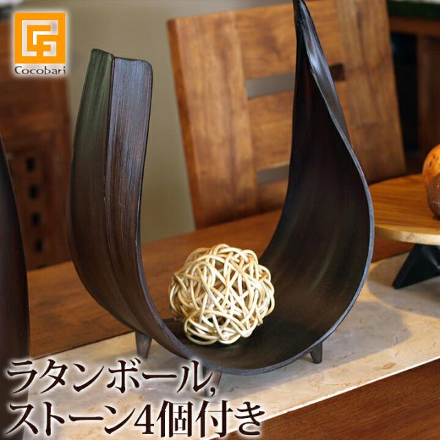 椰子のインテリア2 ラタンボール、ストーン4個付き アジアン雑貨 バリ モダン 和室 おしゃれ インテリア オブジェ バリ風 置物 飾り バリ雑貨