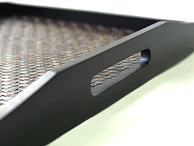 バリのスパを思い出させるチークとバンブーでできたトレーです!全体は丈夫なチーク材でできています。内側のバンブーを編んで作られた模様が、アクセントになっています。