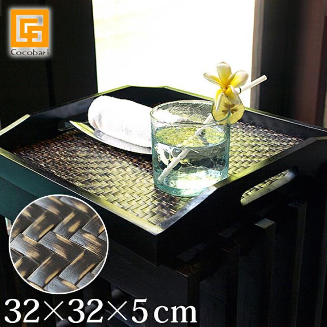 トレイ(チーク&バンブー)32×32×5cm持ち手付き アジアン バリ お盆 トレー おしゃれ 木製 竹 スクエア 台 おぼん バリ雑貨 インテリア ココバリ アジアン雑貨 バリ雑貨 ホテル リゾート おしゃれ インテリア