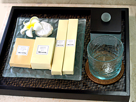 バリのスパを思い出させるチークとバンブーでできたトレーです!