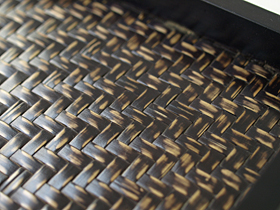 全体は丈夫なチーク材でできています。内側のバンブーを編んで作られた模様が、アクセントになっています。