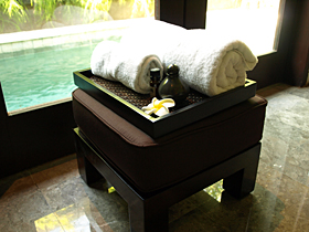 スパなどでオイルボトルやタオルを置くトレイとしても重宝します。