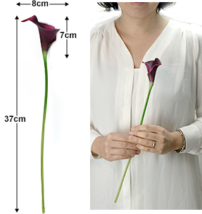 カラーリリィ(S)を20本使用してブーケを作りました。例えば結婚式で、メインのお花は生花のブーケを使用し、お色直しや2次会などは造花のブーケで、という使い方もできますね。枯れないので式の後にも思い出が残りますよ!