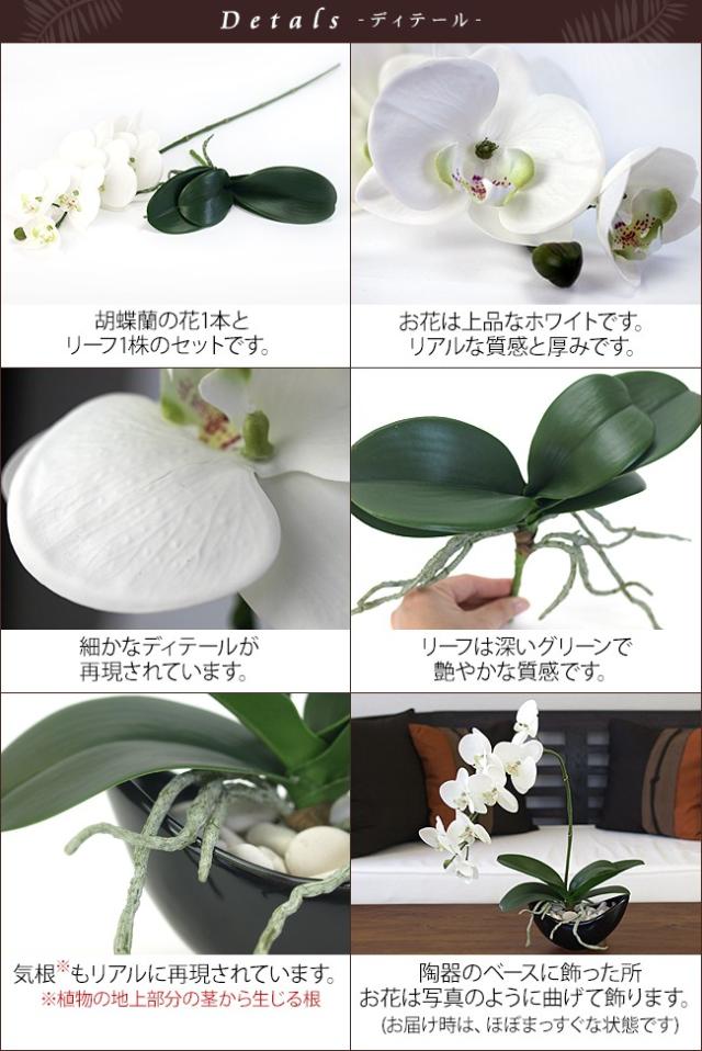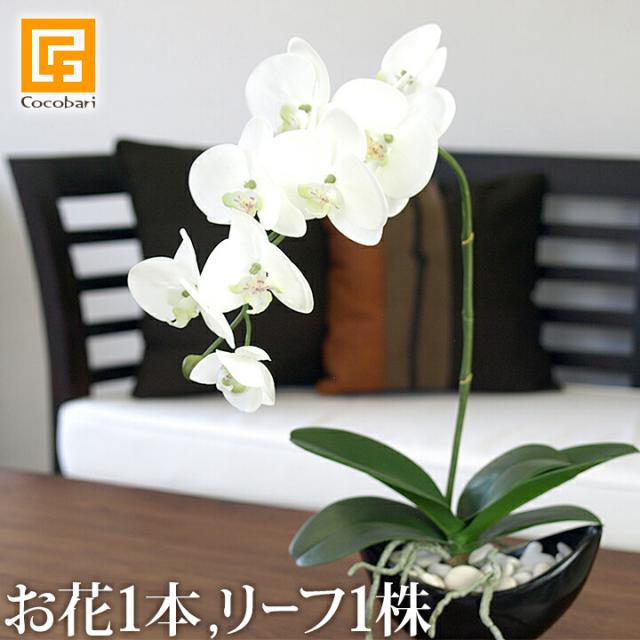 胡蝶蘭(ホワイト)(お花1本&リーフ1株)セット 造花 リアル アートフラワー バリ雑貨 インテリア ココバリ アジアン雑貨 バリ雑貨 ホテル リゾート おしゃれ インテリア