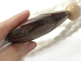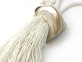 パール質の美しい巻貝に、ココナッツのボタンがついたデザインです。タッセルをつけた瞬間、お部屋がバリのリゾートホテルの雰囲気にチェンジ!