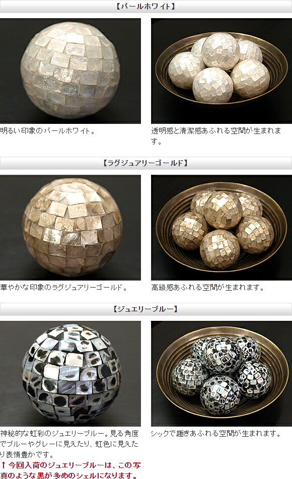 シェルのインテリアボール(5色展開) アジアン雑貨 バリ おしゃれ インテリア雑貨 リゾート 貝 風水 キラキラ インテリア オブジェ デコレーション 球体 バリ雑貨
