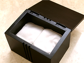 洗面所に置いたイメージ。(光の当たり具合によっては、黒っぽく見える場合があります。)