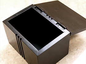 ハンドメイドで格子柄を立体的に表現したデザインで、うっすら見える木目や質感は、一般的な工業製品や、プラスティック製品にはない魅力です。シャープでスタイリッシュなデザインは、シンプルモダンなお部屋にもオススメです。