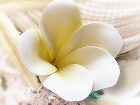 さらに、南国リゾートの雰囲気をプラスするためにプルメリアの造花(フェイクフラワー)をお付けします!