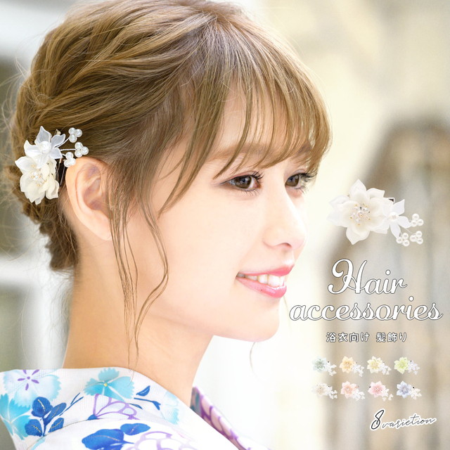 浴衣や夏着物を美しく彩る、花の髪飾りです。