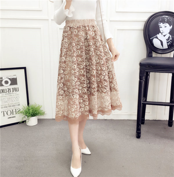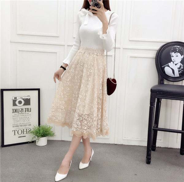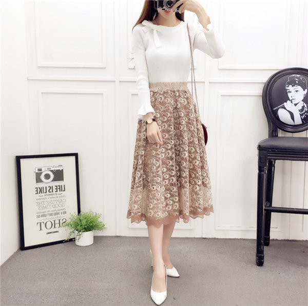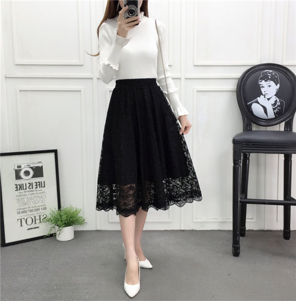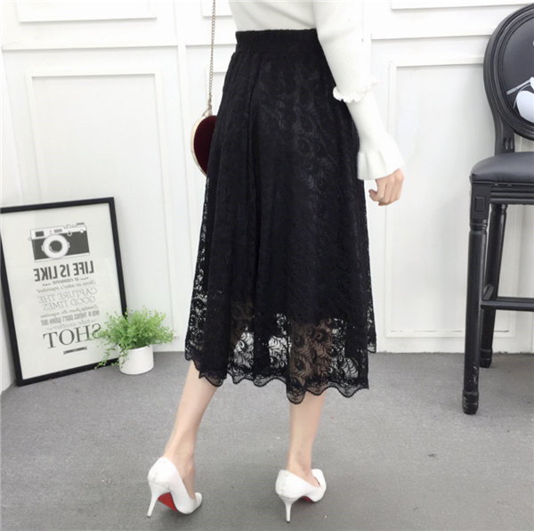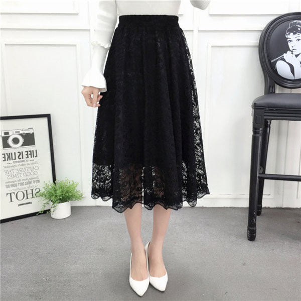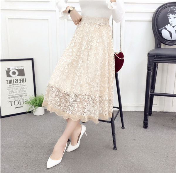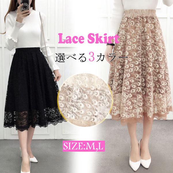送料無料 プリーツスカート レーススカート チュールスカート 膝下丈 フレア ロング丈 ミディアム ミモレ丈 フレアスカー チュチュスカート シースルー