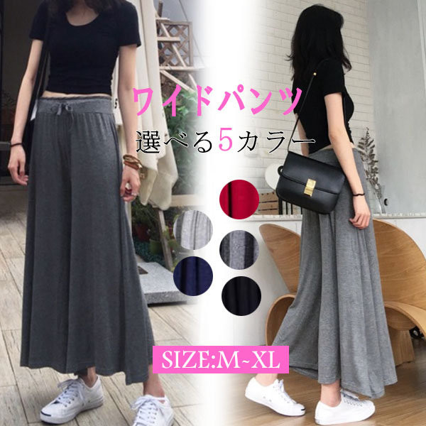 送料無料 ワイドパンツ レディース ガウチョパンツ ゆったり レディースパンツ ロング丈 シンプル スカーチョ 春夏 フレアパンツ スカンツ カットソー