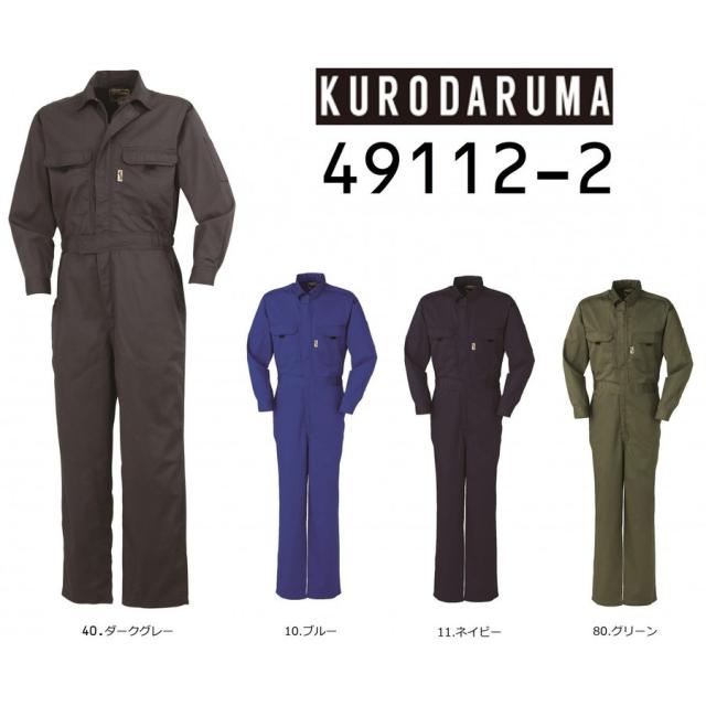 (安いつなぎ) クロダルマ 49112-2 ツナギ服 KURODARUMA S〜8L 作業服 (ネーム刺しゅうできます) (半袖加工できます)