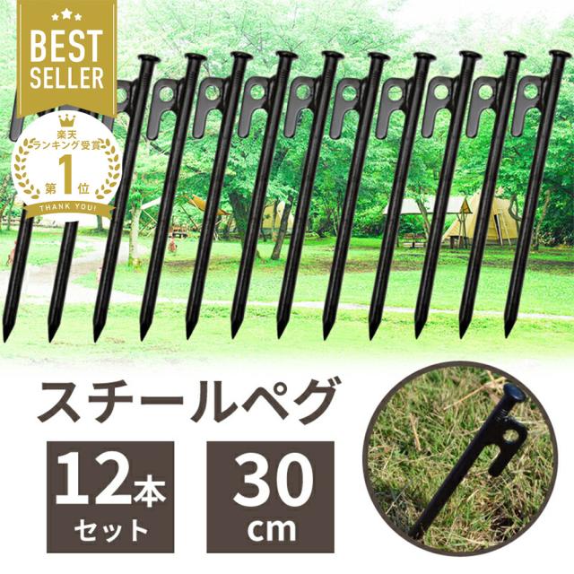 ペグ 30cm セット 12本 スチール テント テント用品 アウトドア キャンプ ピクニック ソロキャンプ キャンプ設営用品