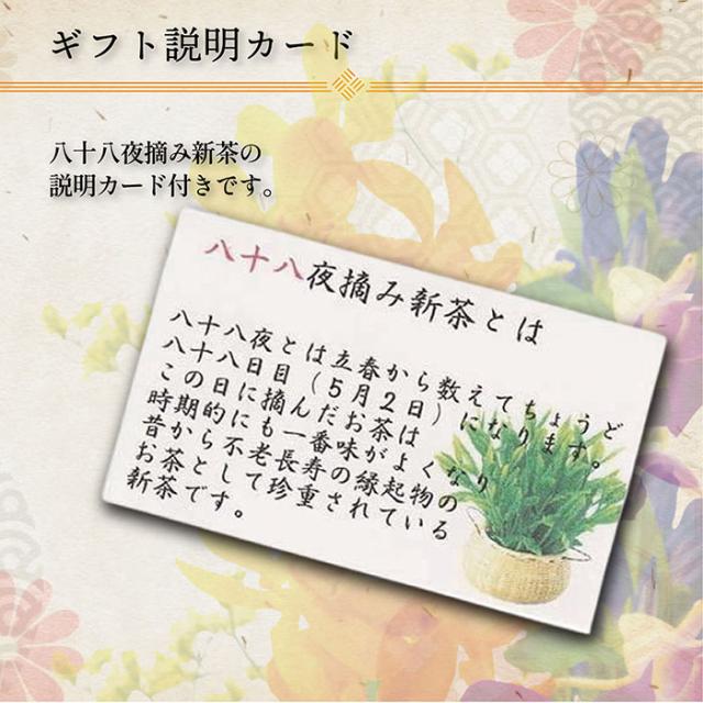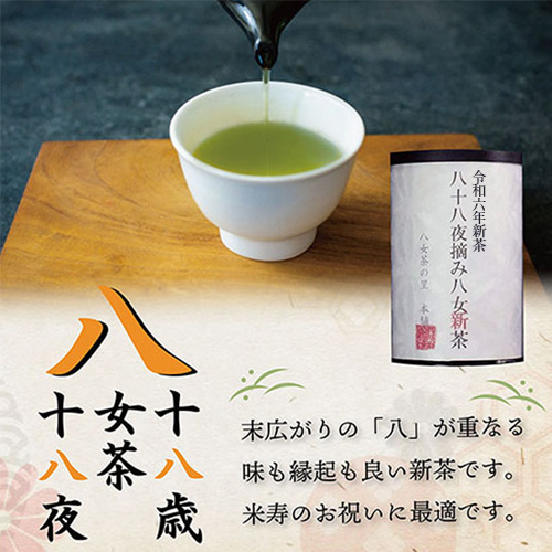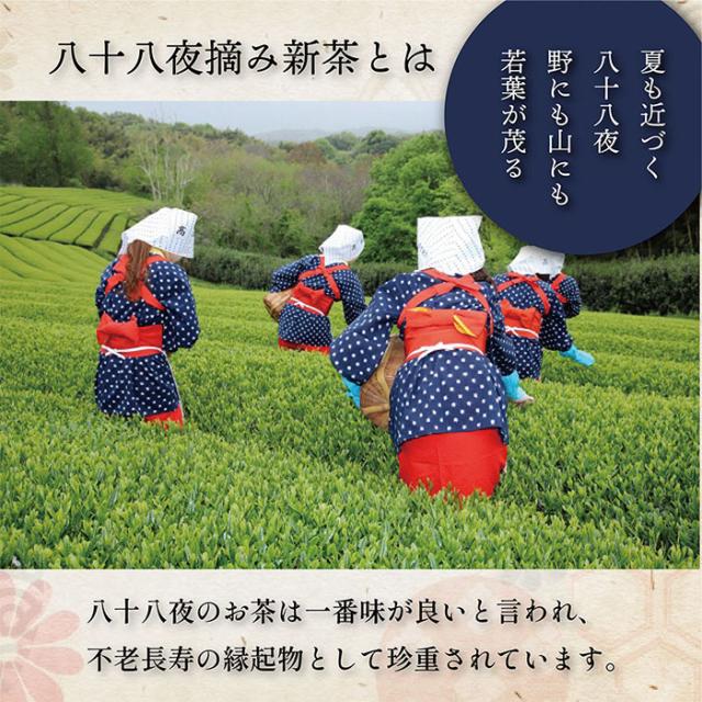 この日に摘んだお茶は時期的にも一番味がよくなり昔からこのお茶を飲む事により不老長寿の縁起物のお茶として珍重されている新茶です。