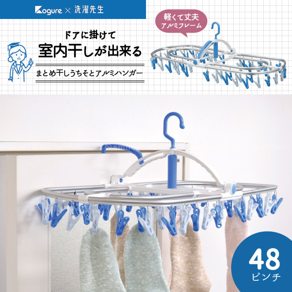 洗濯ピンチハンガー 48ピンチ ドアフック付き 室内干し兼用 アルミフレーム 丈夫 長持ち ランドリーグッズ 時短 kogure コグレ 洗濯先生 201906-01