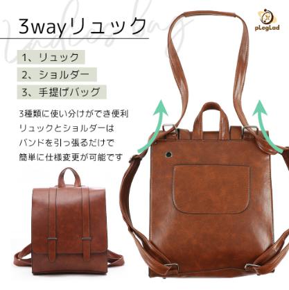 リュック レディース 3way ショルダーバッグ おしゃれ 大人 可愛い PUレザー バッグ バックパック ブラック ブラウン リュックサック 小さめ 小さい お洒落 サッチェル 送料無料 人気 かわいい