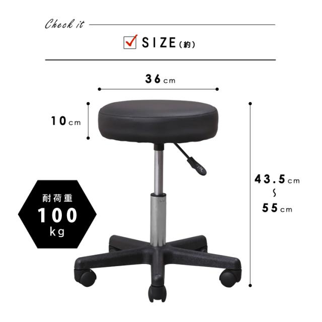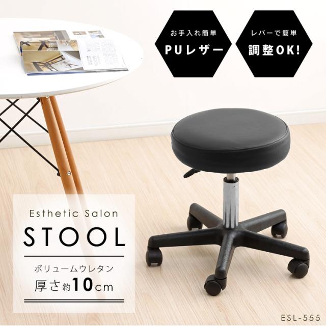 ★クーポンあり★ スツール キャスター 椅子 オフィス エステスツール ブラック ESL-555 回転椅子 丸椅子 キャスター付き スツール 高さ調整 PUレザー フェイクレザー イス チェア
